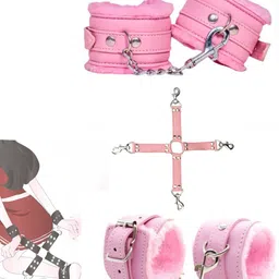 ard Pink Handcuff & Legcuff And Hogtie Soft Leather 3 Pcs For Couples