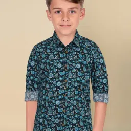 Crimsoune Club Boys Blue Slim Fit Floral Shirt