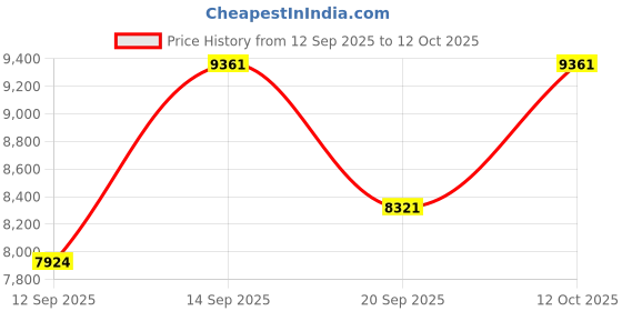 The current price is ₹9,361, which is ₹1,437 (18.1%) higher than the best price of ₹7,924 last seen on 12 Sep 2025. Over the 30 day price history period, prices have ranged from ₹7,924 to ₹9,361, with an average of ₹8,742. The pricing shows moderate volatility, but the overall trend is concerning as prices are getting more expensive. In terms of recent activity, there have been 0 price changes this week, 1 this month, and 3 over the past year. If you need this product now, it's a reasonable time to buy as prices are stable, but you might want to monitor for potential better deals.