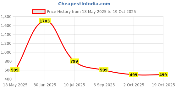 Great news for shoppers! The current price of ₹499 is at its best ever level. Over the 153 day price history period, prices have ranged from ₹499 to ₹1,703, with an average of ₹783. The pricing shows high volatility with significant fluctuations, and the overall trend is favorable for consumers as prices are getting cheaper. In terms of recent activity, there have been 0 price changes this week, 0 this month, and 4 over the past year. If you need this product now, it's a reasonable time to buy as prices are stable, but you might want to monitor for potential better deals.