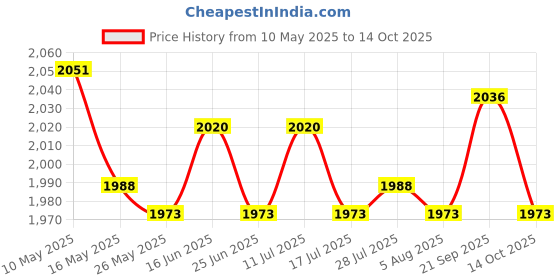 Awesome! The current price of ₹1,973 is at its best ever level. Over the 157 day price history period, prices have ranged from ₹1,973 to ₹2,051, with an average of ₹1,997. The pricing has been quite stable with low volatility, with prices remaining relatively stable overall. In terms of recent activity, there have been 0 price changes this week, 1 this month, and 10 over the past year. If you need this product now, it's a reasonable time to buy as prices are stable, but you might want to monitor for potential better deals.