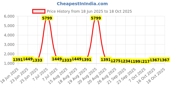 The current price is ₹1,367, which is ₹168 (14.0%) higher than the best price of ₹1,199 last seen on 23 Sep 2025. Over the 122 day price history period, prices have ranged from ₹1,199 to ₹5,799, with an average of ₹1,903. The pricing shows high volatility with significant fluctuations, with prices remaining relatively stable overall. In terms of recent activity, there have been 0 price changes this week, 3 this month, and 14 over the past year. The price direction is uncertain, so monitor the situation for a few more days before making a decision.
