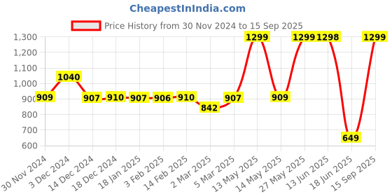 The current price is ₹1,299, which is ₹650 (100.2%) higher than the best price of ₹649 last seen on 18 Jun 2025. Over the 289 day price history period, prices have ranged from ₹649 to ₹1,299, with an average of ₹999. The pricing shows high volatility with significant fluctuations, but the overall trend is concerning as prices are getting more expensive. In terms of recent activity, there have been 0 price changes this week, 0 this month, and 14 over the past year. If you need this product now, it's a reasonable time to buy as prices are stable, but you might want to monitor for potential better deals.