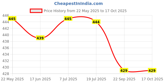 Good news! The current price of ₹429 is at its best ever level. Over the 147 day price history period, prices have ranged from ₹429 to ₹445, with an average of ₹439. The pricing has been quite stable with low volatility, with prices remaining relatively stable overall. In terms of recent activity, there have been 0 price changes this week, 0 this month, and 4 over the past year. If you need this product now, it's a reasonable time to buy as prices are stable, but you might want to monitor for potential better deals.