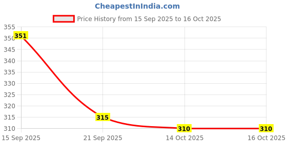 Awesome! The current price of ₹310 is at its best ever level. Over the 31 day price history period, prices have ranged from ₹310 to ₹351, with an average of ₹322. The pricing shows moderate volatility, and the overall trend is favorable for consumers as prices are getting cheaper. In terms of recent activity, there have been 0 price changes this week, 1 this month, and 2 over the past year. If you need this product now, it's a reasonable time to buy as prices are stable, but you might want to monitor for potential better deals.