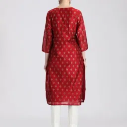 COTTON CULTURE Women Red Rayon Printed A Line Kurta