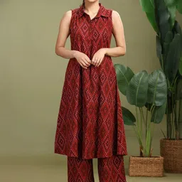 Cotton Culture Maroon Cotton Printed Flared Kurta