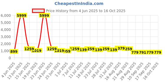 Good news! The current price of ₹779 is at its best ever level. Over the 134 day price history period, prices have ranged from ₹779 to ₹5,999, with an average of ₹1,569. The pricing shows high volatility with significant fluctuations, and the overall trend is favorable for consumers as prices are getting cheaper. In terms of recent activity, there have been 0 price changes this week, 0 this month, and 18 over the past year. If you need this product now, it's a reasonable time to buy as prices are stable, but you might want to monitor for potential better deals.
