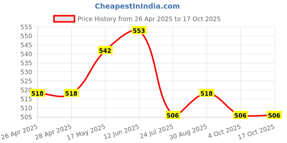 Good news! The current price of ₹506 is at its best ever level. Over the 173 day price history period, prices have ranged from ₹506 to ₹553, with an average of ₹521. The pricing has been quite stable with low volatility, with prices remaining relatively stable overall. In terms of recent activity, there have been 0 price changes this week, 0 this month, and 6 over the past year. If you need this product now, it's a reasonable time to buy as prices are stable, but you might want to monitor for potential better deals.