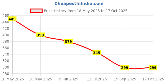 Great news for shoppers! The current price of ₹299 is at its best ever level. Over the 151 day price history period, prices have ranged from ₹299 to ₹449, with an average of ₹362. The pricing shows moderate volatility, and the overall trend is favorable for consumers as prices are getting cheaper. In terms of recent activity, there have been 0 price changes this week, 0 this month, and 4 over the past year. If you need this product now, it's a reasonable time to buy as prices are stable, but you might want to monitor for potential better deals.