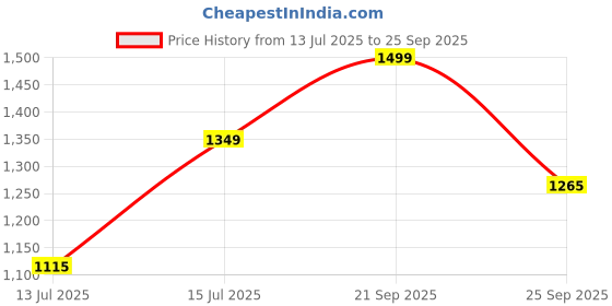 The current price is ₹1,265, which is ₹150 (13.5%) higher than the best price of ₹1,115 last seen on 13 Jul 2025. Over the 74 day price history period, prices have ranged from ₹1,115 to ₹1,499, with an average of ₹1,307. The pricing shows moderate volatility, but the overall trend is concerning as prices are getting more expensive. In terms of recent activity, there have been 0 price changes this week, 0 this month, and 3 over the past year. If you need this product now, it's a reasonable time to buy as prices are stable, but you might want to monitor for potential better deals.