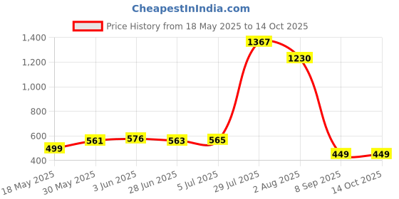 Great news for shoppers! The current price of ₹449 is at its best ever level. Over the 148 day price history period, prices have ranged from ₹449 to ₹1,367, with an average of ₹695. The pricing shows high volatility with significant fluctuations, and the overall trend is favorable for consumers as prices are getting cheaper. In terms of recent activity, there have been 0 price changes this week, 0 this month, and 7 over the past year. This is an excellent time to make a purchase as prices are trending downward and conditions appear favorable.