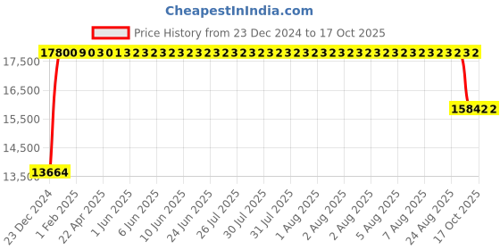 The current price is ₹15,842, which is ₹2,178 (15.9%) higher than the best price of ₹13,664 last seen on 23 Dec 2024. Over the 297 day price history period, prices have ranged from ₹13,664 to ₹17,803, with an average of ₹17,638. The pricing has been quite stable with low volatility, but the overall trend is concerning as prices are getting more expensive. In terms of recent activity, there have been 0 price changes this week, 0 this month, and 47 over the past year. The price direction is uncertain, so monitor the situation for a few more days before making a decision.