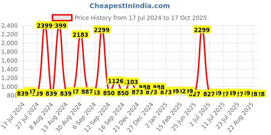 The current price is ₹828, which is ₹1 (0.1%) higher than the best price of ₹827 last seen on 25 Jun 2025. Over the 456 day price history period, prices have ranged from ₹827 to ₹2,399, with an average of ₹1,094. The pricing shows high volatility with significant fluctuations, with prices remaining relatively stable overall. In terms of recent activity, there have been 0 price changes this week, 0 this month, and 16 over the past year. If you need this product now, it's a reasonable time to buy as prices are stable, but you might want to monitor for potential better deals.