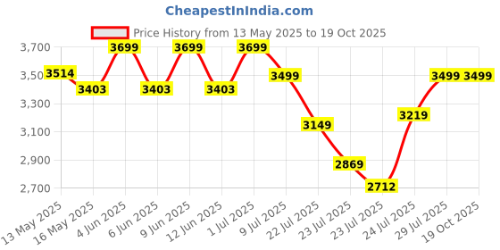 The current price is ₹3,499, which is ₹787 (29.0%) higher than the best price of ₹2,712 last seen on 23 Jul 2025. Over the 158 day price history period, prices have ranged from ₹2,712 to ₹3,699, with an average of ₹3,376. The pricing shows moderate volatility, with prices remaining relatively stable overall. In terms of recent activity, there have been 0 price changes this week, 0 this month, and 12 over the past year. The price direction is uncertain, so monitor the situation for a few more days before making a decision.
