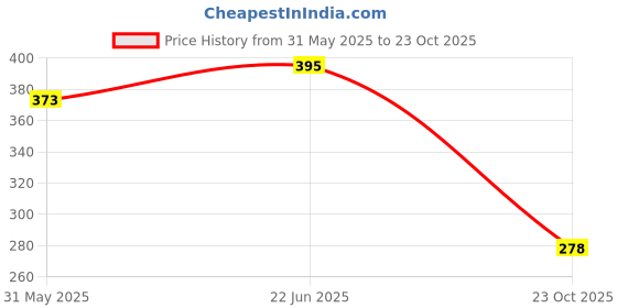 Great news for shoppers! The current price of ₹278 is at its best ever level. Over the 145 day price history period, prices have ranged from ₹278 to ₹395, with an average of ₹349. The pricing shows moderate volatility, and the overall trend is favorable for consumers as prices are getting cheaper. In terms of recent activity, there have been 0 price changes this week, 0 this month, and 2 over the past year. If you need this product now, it's a reasonable time to buy as prices are stable, but you might want to monitor for potential better deals.
