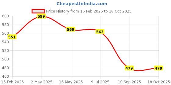 Awesome! The current price of ₹479 is at its best ever level. Over the 244 day price history period, prices have ranged from ₹479 to ₹599, with an average of ₹540. The pricing shows moderate volatility, and the overall trend is favorable for consumers as prices are getting cheaper. In terms of recent activity, there have been 0 price changes this week, 0 this month, and 4 over the past year. If you need this product now, it's a reasonable time to buy as prices are stable, but you might want to monitor for potential better deals.