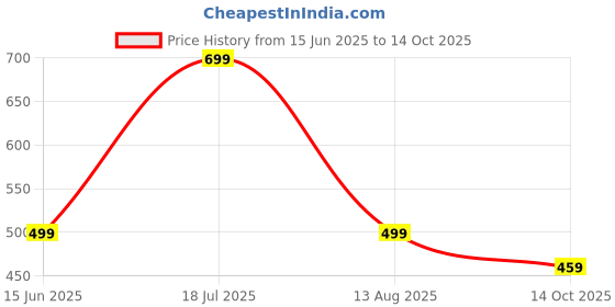 Exciting update! The current price of ₹459 is at its best ever level. Over the 121 day price history period, prices have ranged from ₹459 to ₹699, with an average of ₹539. The pricing shows high volatility with significant fluctuations, and the overall trend is favorable for consumers as prices are getting cheaper. In terms of recent activity, there have been 0 price changes this week, 0 this month, and 3 over the past year. This is an excellent time to make a purchase as prices are trending downward and conditions appear favorable.