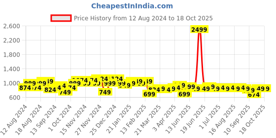 The current price is ₹849, which is ₹175 (26.0%) higher than the best price of ₹674 last seen on 20 Sep 2025. Over the 432 day price history period, prices have ranged from ₹674 to ₹2,499, with an average of ₹938. The pricing shows high volatility with significant fluctuations, with prices remaining relatively stable overall. In terms of recent activity, there have been 0 price changes this week, 1 this month, and 36 over the past year. The price direction is uncertain, so monitor the situation for a few more days before making a decision.