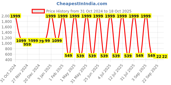 Exciting update! The current price of ₹522 is at its best ever level. Over the 352 day price history period, prices have ranged from ₹522 to ₹1,999, with an average of ₹1,223. The pricing shows high volatility with significant fluctuations, and the overall trend is favorable for consumers as prices are getting cheaper. In terms of recent activity, there have been 0 price changes this week, 0 this month, and 24 over the past year. If you need this product now, it's a reasonable time to buy as prices are stable, but you might want to monitor for potential better deals.