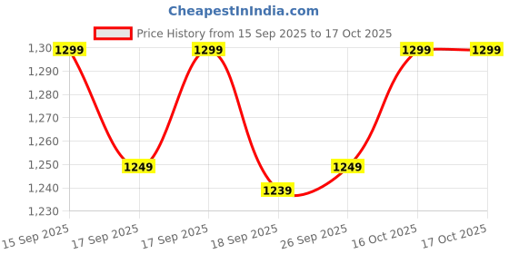 The current price is ₹1,299, which is ₹60 (4.8%) higher than the best price of ₹1,239 last seen on 18 Sep 2025. Over the 31 day price history period, prices have ranged from ₹1,239 to ₹1,299, with an average of ₹1,276. The pricing has been quite stable with low volatility, with prices remaining relatively stable overall. In terms of recent activity, there have been 0 price changes this week, 4 this month, and 5 over the past year. If you need this product now, it's a reasonable time to buy as prices are stable, but you might want to monitor for potential better deals.