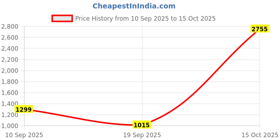 The current price is ₹2,755, which is ₹1,740 (171.4%) higher than the best price of ₹1,015 last seen on 19 Sep 2025. Over the 35 day price history period, prices have ranged from ₹1,015 to ₹2,755, with an average of ₹1,690. The pricing shows high volatility with significant fluctuations, but the overall trend is concerning as prices are getting more expensive. In terms of recent activity, there have been 0 price changes this week, 1 this month, and 2 over the past year. Consider waiting before making a purchase as prices are rising and better deals may be available later.