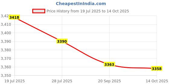 Fantastic! The current price of ₹3,358 is at its best ever level. Over the 87 day price history period, prices have ranged from ₹3,358 to ₹3,418, with an average of ₹3,382. The pricing has been quite stable with low volatility, with prices remaining relatively stable overall. In terms of recent activity, there have been 0 price changes this week, 1 this month, and 3 over the past year. If you need this product now, it's a reasonable time to buy as prices are stable, but you might want to monitor for potential better deals.