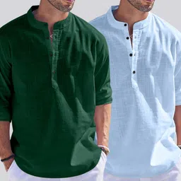 zartha Pack of 2 Men Solid Cotton Blend Straight Kurta