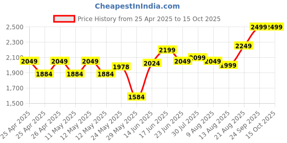 The current price is ₹2,499, which is ₹915 (57.8%) higher than the best price of ₹1,584 last seen on 29 May 2025. Over the 172 day price history period, prices have ranged from ₹1,584 to ₹2,499, with an average of ₹2,060. The pricing shows moderate volatility, but the overall trend is concerning as prices are getting more expensive. In terms of recent activity, there have been 0 price changes this week, 0 this month, and 15 over the past year. Consider waiting before making a purchase as prices are rising and better deals may be available later.