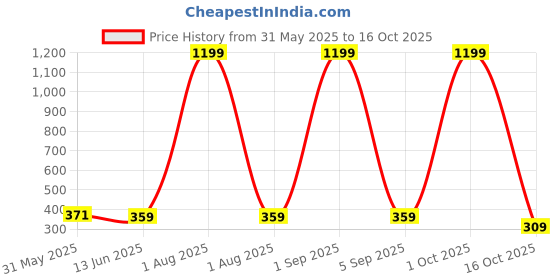 Fantastic! The current price of ₹309 is at its best ever level. Over the 138 day price history period, prices have ranged from ₹309 to ₹1,199, with an average of ₹669. The pricing shows high volatility with significant fluctuations, and the overall trend is favorable for consumers as prices are getting cheaper. In terms of recent activity, there have been 0 price changes this week, 1 this month, and 7 over the past year. If you need this product now, it's a reasonable time to buy as prices are stable, but you might want to monitor for potential better deals.