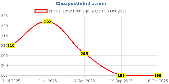 Fantastic! The current price of ₹195 is at its best ever level. Over the 96 day price history period, prices have ranged from ₹195 to ₹222, with an average of ₹206. The pricing has been quite stable with low volatility, and the overall trend is favorable for consumers as prices are getting cheaper. In terms of recent activity, there have been 0 price changes this week, 1 this month, and 3 over the past year. If you need this product now, it's a reasonable time to buy as prices are stable, but you might want to monitor for potential better deals.