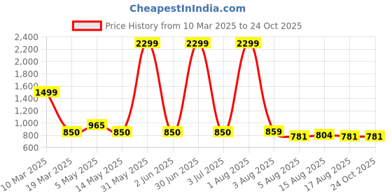 Fantastic! The current price of ₹781 is at its best ever level. Over the 228 day price history period, prices have ranged from ₹781 to ₹2,299, with an average of ₹1,198. The pricing shows high volatility with significant fluctuations, and the overall trend is favorable for consumers as prices are getting cheaper. In terms of recent activity, there have been 0 price changes this week, 0 this month, and 12 over the past year. If you need this product now, it's a reasonable time to buy as prices are stable, but you might want to monitor for potential better deals.