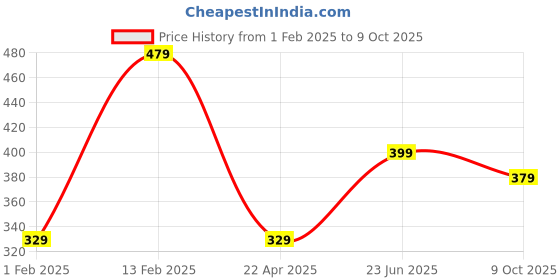The current price is ₹379.05, which is ₹50.05 (15.2%) higher than the best price of ₹329 last seen on 1 Feb 2025. Over the 250 day price history period, prices have ranged from ₹329 to ₹479, with an average of ₹383. The pricing shows moderate volatility, but the overall trend is concerning as prices are getting more expensive. In terms of recent activity, there have been 0 price changes this week, 0 this month, and 4 over the past year. If you need this product now, it's a reasonable time to buy as prices are stable, but you might want to monitor for potential better deals.