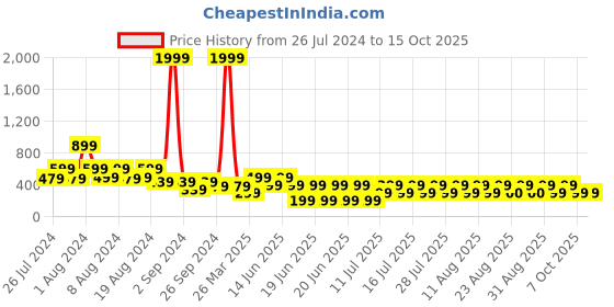 The current price is ₹299, which is ₹100 (50.3%) higher than the best price of ₹199 last seen on 18 Jun 2025. Over the 446 day price history period, prices have ranged from ₹199 to ₹1,999, with an average of ₹462. The pricing shows high volatility with significant fluctuations, and the overall trend is favorable for consumers as prices are getting cheaper. In terms of recent activity, there have been 0 price changes this week, 2 this month, and 32 over the past year. If you need this product now, it's a reasonable time to buy as prices are stable, but you might want to monitor for potential better deals.