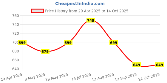 Awesome! The current price of ₹649 is at its best ever level. Over the 167 day price history period, prices have ranged from ₹649 to ₹749, with an average of ₹689. The pricing has been quite stable with low volatility, and the overall trend is favorable for consumers as prices are getting cheaper. In terms of recent activity, there have been 0 price changes this week, 0 this month, and 5 over the past year. If you need this product now, it's a reasonable time to buy as prices are stable, but you might want to monitor for potential better deals.