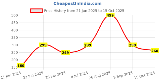 The current price is ₹260, which is ₹100 (62.5%) higher than the best price of ₹160 last seen on 21 Jun 2025. Over the 116 day price history period, prices have ranged from ₹160 to ₹499, with an average of ₹295. The pricing shows high volatility with significant fluctuations, but the overall trend is concerning as prices are getting more expensive. In terms of recent activity, there have been 0 price changes this week, 0 this month, and 6 over the past year. The price direction is uncertain, so monitor the situation for a few more days before making a decision.