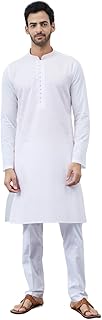 see designs Mens Regular Fit Kurta | Specially Crafted and Designed for the Eid Festival White Cotton Embroidered Kurta With Pajama Set Mandarin Collar Long Sleeves Chikankari Kurta | SDKT109301XXL