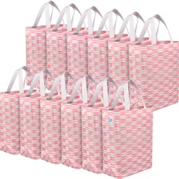 heart home Non-Woven Reusable Zig-Zag Shopping Handbag|Pack of 12|Pink Pack of 12 Grocery Bags
