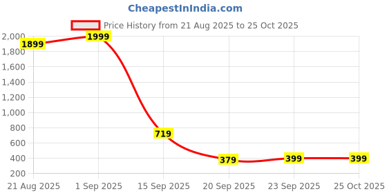 The current price is ₹399, which is ₹20 (5.3%) higher than the best price of ₹379 last seen on 20 Sep 2025. Over the 64 day price history period, prices have ranged from ₹379 to ₹1,999, with an average of ₹966. The pricing shows high volatility with significant fluctuations, and the overall trend is favorable for consumers as prices are getting cheaper. In terms of recent activity, there have been 0 price changes this week, 0 this month, and 4 over the past year. If you need this product now, it's a reasonable time to buy as prices are stable, but you might want to monitor for potential better deals.