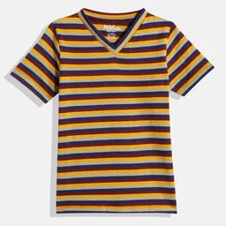 METRO KIDS COMPANY Boys Maroon & Yellow Striped V-Neck T-shirt