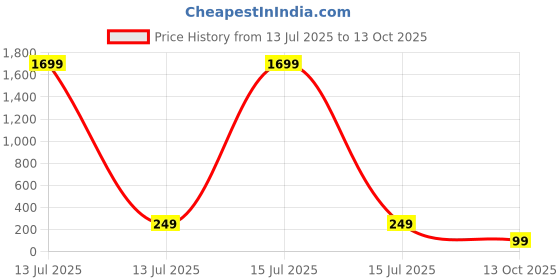 Great news for shoppers! The current price of ₹99 is at its best ever level. Over the 92 day price history period, prices have ranged from ₹99 to ₹1,699, with an average of ₹799. The pricing shows high volatility with significant fluctuations, and the overall trend is favorable for consumers as prices are getting cheaper. In terms of recent activity, there have been 0 price changes this week, 0 this month, and 4 over the past year. This is an excellent time to make a purchase as prices are trending downward and conditions appear favorable.