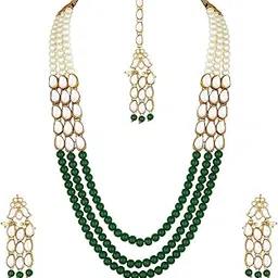 peora Gold Plated Kundan Pearl Long Necklace with Earring Maang Tikka Traditional Jewellery Set for Women Girls