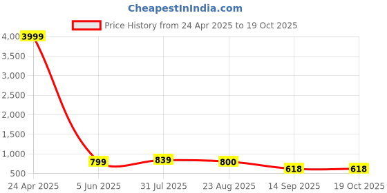 Awesome! The current price of ₹618 is at its best ever level. Over the 177 day price history period, prices have ranged from ₹618 to ₹3,999, with an average of ₹1,279. The pricing shows high volatility with significant fluctuations, and the overall trend is favorable for consumers as prices are getting cheaper. In terms of recent activity, there have been 0 price changes this week, 0 this month, and 4 over the past year. This is an excellent time to make a purchase as prices are trending downward and conditions appear favorable.