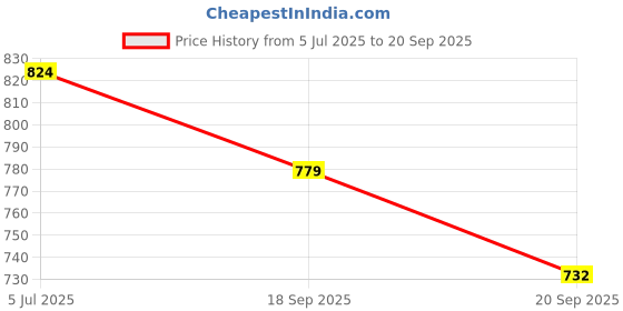 Good news! The current price of ₹732 is at its best ever level. Over the 77 day price history period, prices have ranged from ₹732 to ₹824, with an average of ₹778. The pricing has been quite stable with low volatility, and the overall trend is favorable for consumers as prices are getting cheaper. In terms of recent activity, there have been 0 price changes this week, 0 this month, and 2 over the past year. If you need this product now, it's a reasonable time to buy as prices are stable, but you might want to monitor for potential better deals.