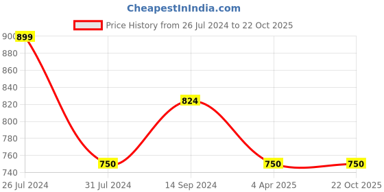 Exciting update! The current price of ₹750 is at its best ever level. Over the 452 day price history period, prices have ranged from ₹750 to ₹899, with an average of ₹795. The pricing shows moderate volatility, and the overall trend is favorable for consumers as prices are getting cheaper. In terms of recent activity, there have been 0 price changes this week, 0 this month, and 0 over the past year. If you need this product now, it's a reasonable time to buy as prices are stable, but you might want to monitor for potential better deals.
