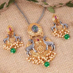 VATSALYA creation Alloy Gold- plated Green Silver Jewellery Set