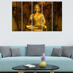 WENS Grey & Yellow 5 Panelled Wonders Of Nature Velvet Laminated Wall Painting