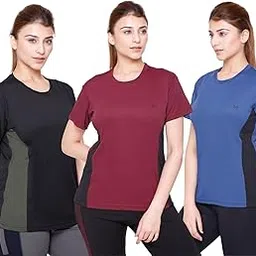 White Moon Women's Dry Fit Polyester Round Neck Half Sleeve T-Shirt Pack of 3 | Gym T-Shirt | Sports T-Shirt | Dry Fit T-Shirt for Women | Gym Wear for Women | Gym Workout