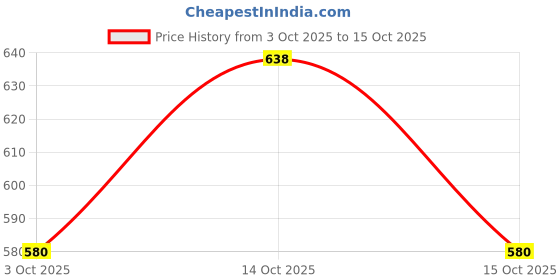 Great news for shoppers! The current price of ₹580 is at its best ever level. Over the 12 day price history period, prices have ranged from ₹580 to ₹638, with an average of ₹599. The pricing has been quite stable with low volatility, with prices remaining relatively stable overall. In terms of recent activity, there has been 1 price change this week, 2 this month, and 2 over the past year. If you need this product now, it's a reasonable time to buy as prices are stable, but you might want to monitor for potential better deals.