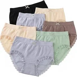 azeotop Women Cotton Net 3Piece Panty Set Soft Cotton Underwear Comfortable Panty for Women Stretchable Innerwear for Ladies
